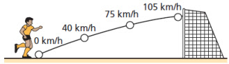 Um telejornal reproduziu o gol de um famoso jogador de futebol, assinalando, ao lado da trajetória, a velocidade instantânea da bola.