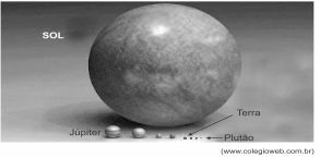Em uma palestra, um cientista ilustrou comparativamente o tamanho dos planetas do sistema solar com auxílio da foto a seguir.